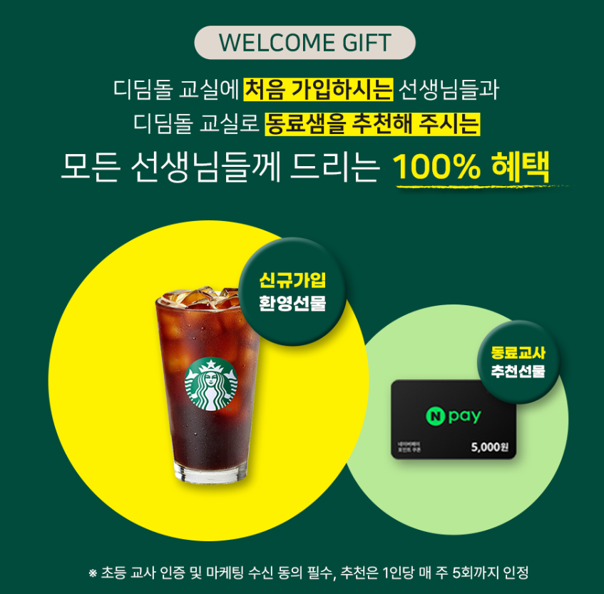 디딤돌교실에서 정회원(교사인증) 회원가입 이벤트를 하고 있어 소식을 들고왔습니다.