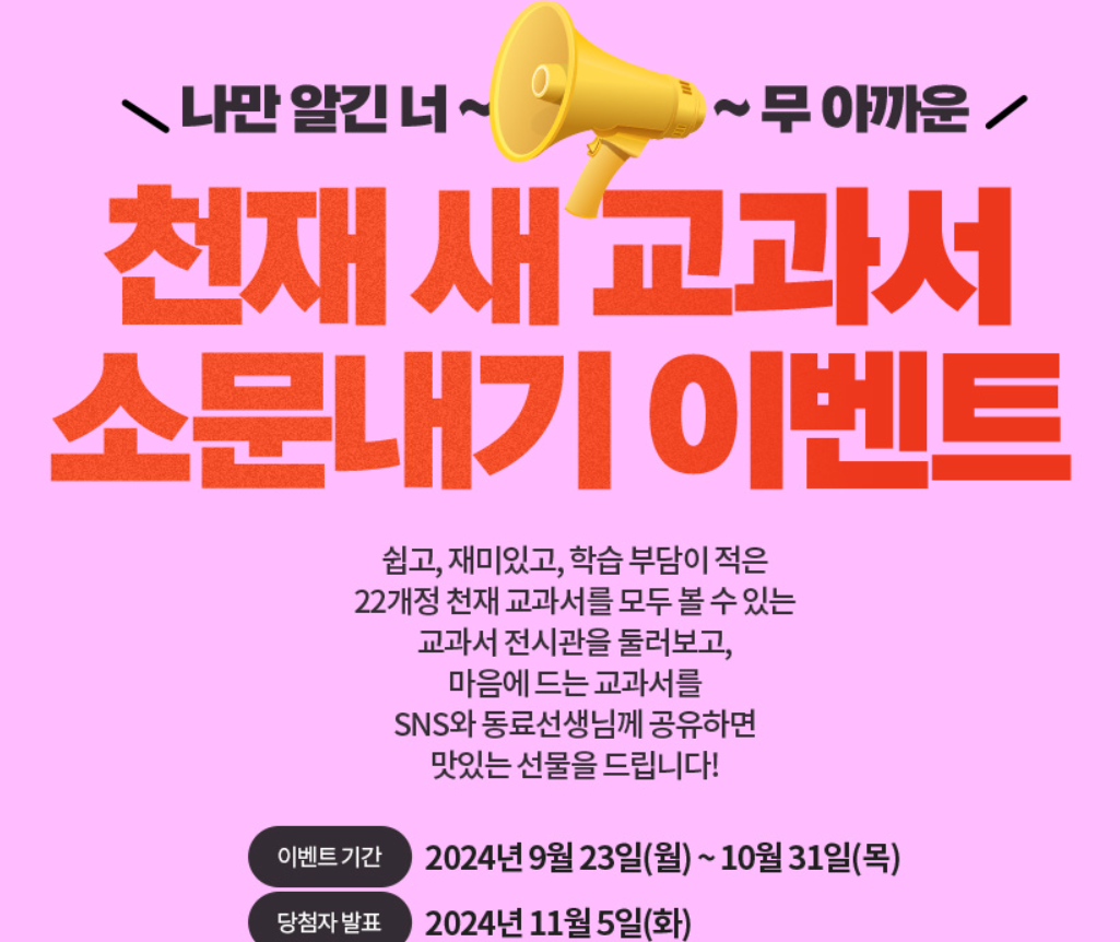 다양한 출판사에서 현재 이벤트를 진행중인데요, 천재교육 이벤트 소개드립니다.